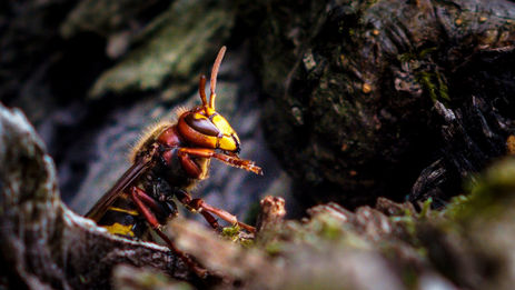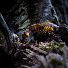 OK, der Titel hat Sie unter Umständen etwas anderes erwarten lassen ... und doch passt er perfekt. Zufällig aber mit offenen Augen wurde ich von einem Hornissen-Nest in einem Apfelbaum überrascht. Die Tiere waren friedlich und entspannt. Bis auf den Wächter am Eingang, den "Türsteher", der jeden Rückkehrer einer intensiven und körperkontaktfreudigen Begutachtung unterzog.